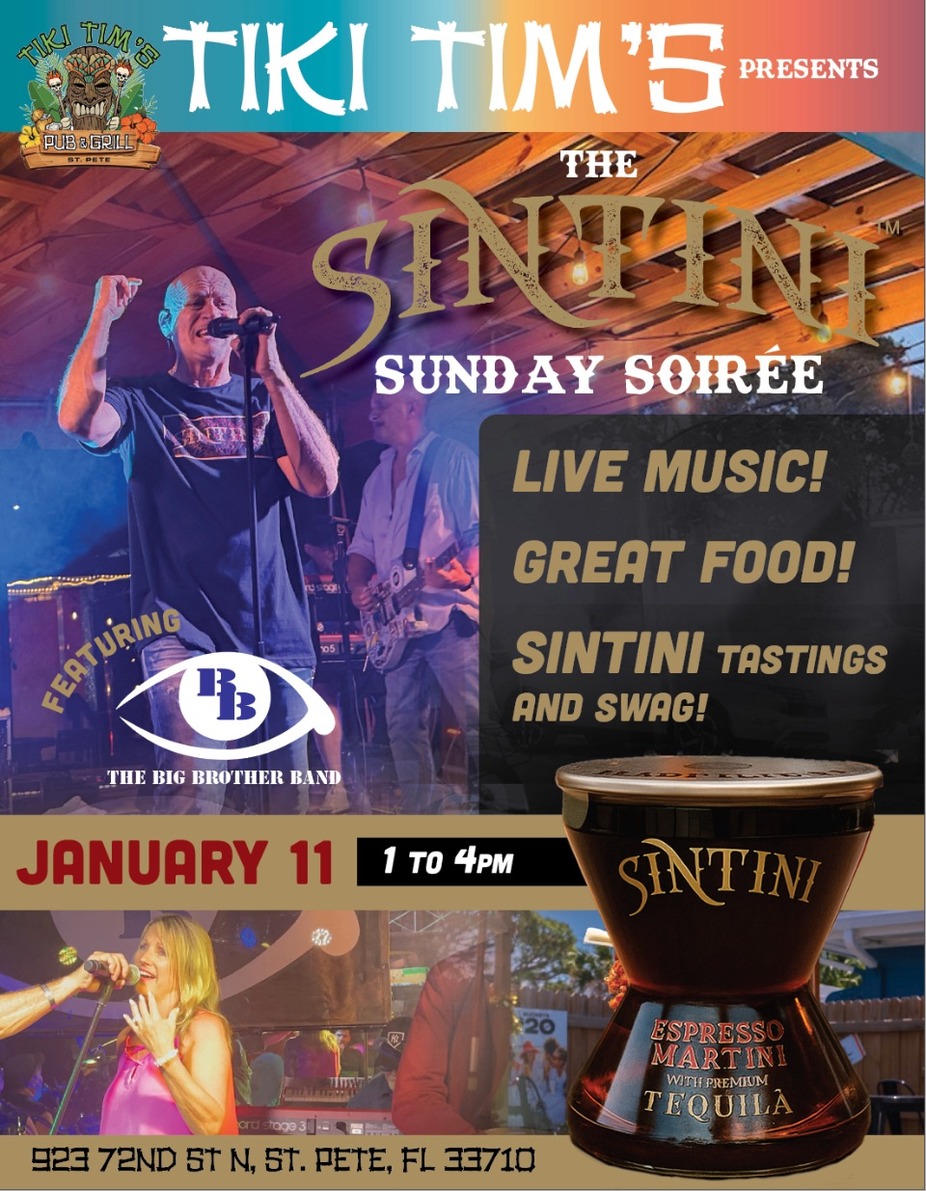 The party of the New Year, y'all!! Make your plan and swing over THIS Sunday FUNday!! We have the always awesomely FUN BIG BROTHER BAND hitting the back stage @ 1 pm and taking us thru this FUN-filled day celebrating the new SINTINI, ready-to-drink espresso Tini made with premium tequila for a brand new spin on the Espresso Tini!! There will be games, swag, and samples courtesy of SINTINI!
