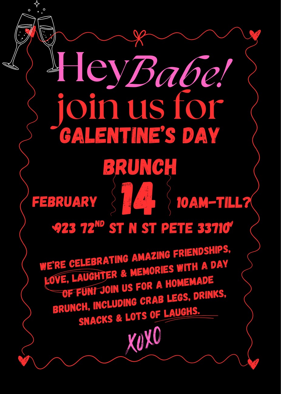 Gather your crew and make your plans now to swing on over for our GALentines Day!! Let's Celebrate friendship, love, laughter & memories! We will have crab legs with corn & potatoes for $26.95, our awesome homemade brunch menu available all day, bubbly (of course), and some special cocktails just for Galentines Day! Let's celebrate!!