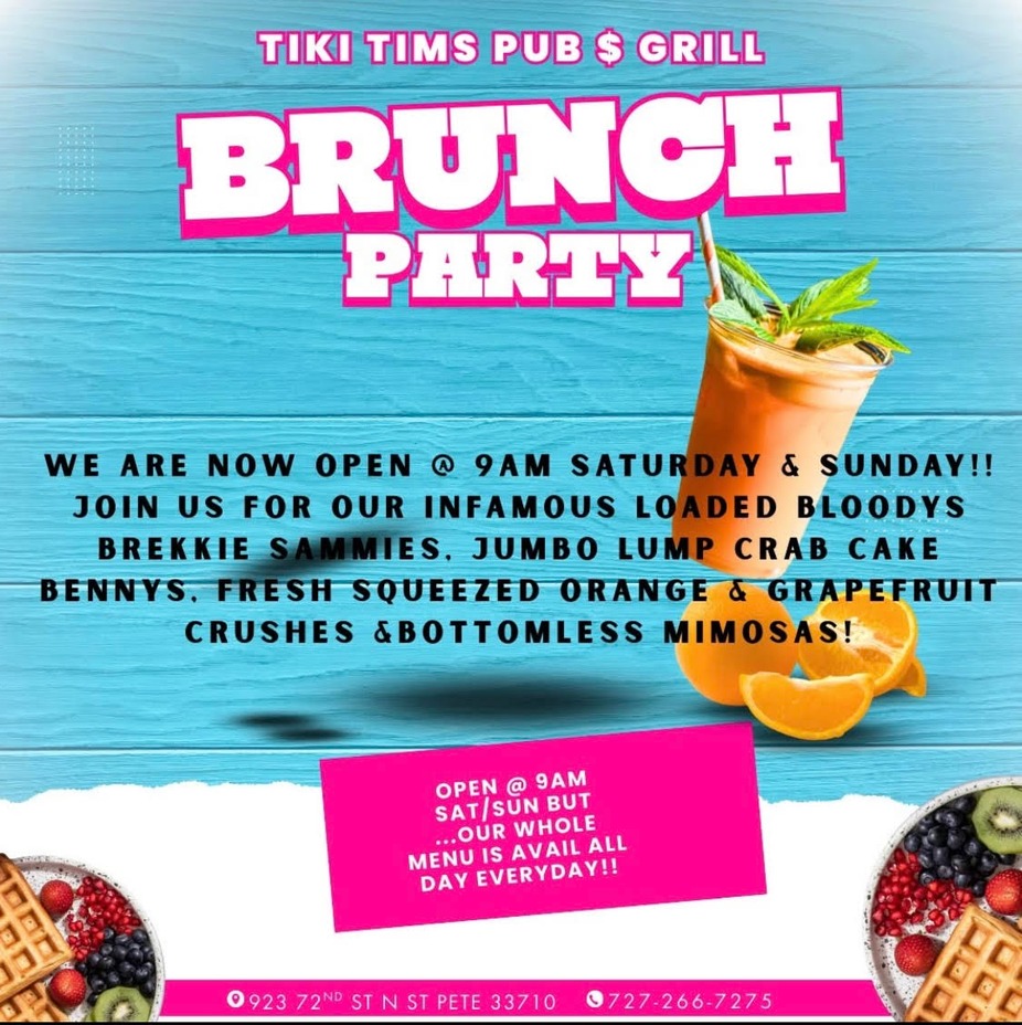 We OPEN @ 9am Every Saturday & Sunday for our weekend brunch!! Come on over for one of our award-winning Best of The Bay LOADED Bloodies and a Jumbo Lump Crab Cake Benny!! We have BOTTOMLESS Mimosas and more!!
