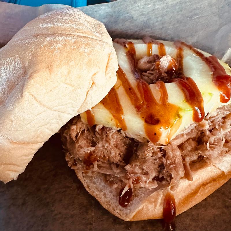 Slow Roasted all night In-House. Served on Kaiser Roll with grilled pineapple